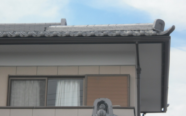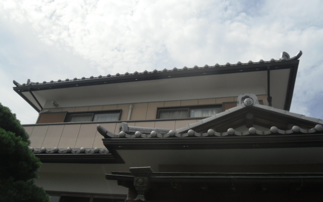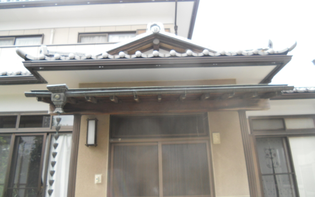 実はリフォーム工事の直前に夢に出てきた父が「正面玄関上部分の「間中」の家紋は残してくれ!」と言うのでそこは一切手を付けずにそれ以外の雨樋と漆喰の塗装のみで‼というこちらの意向に沿う形で工事をしていただけたので助かったと話していました。