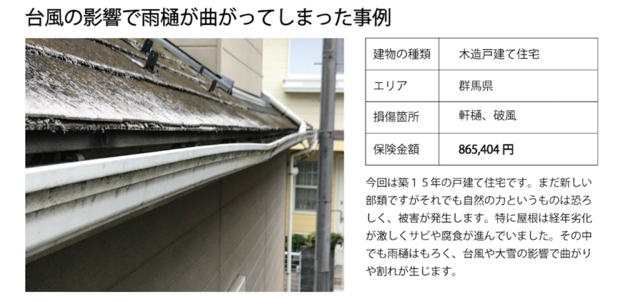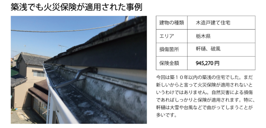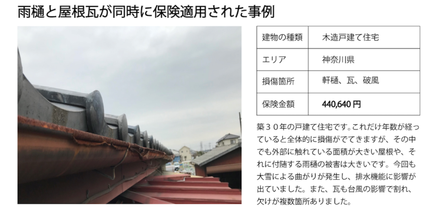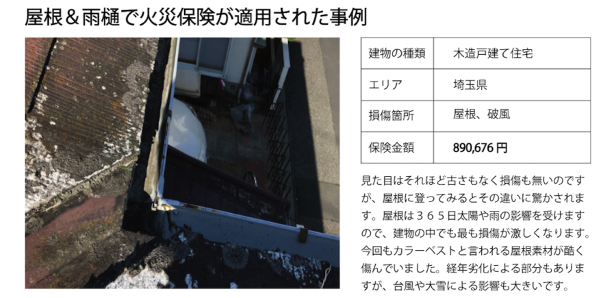 では、実際にどの程度の損傷でどの程度の保険金が下りるか?当サイトの実例を公開させて頂きます。